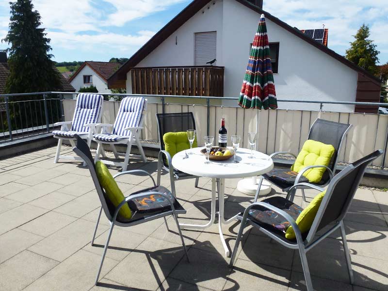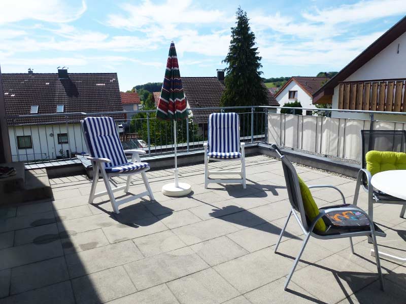 Auf der 30 m² großen Dachterrasse können Sie gemütlich frühstücken und abends bei einem Gläschen Wein den Tag ausklingen und die Seele baumeln lassen.